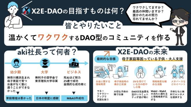 X2E-DAOはインフルエンサーのaki社長が作ったDAOです。