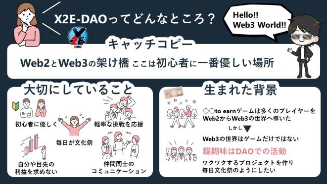 このキャッチコピーの元、日々多くの人がX2E-DAOで活動しています。