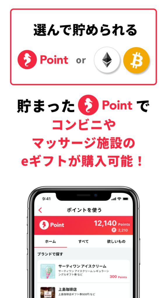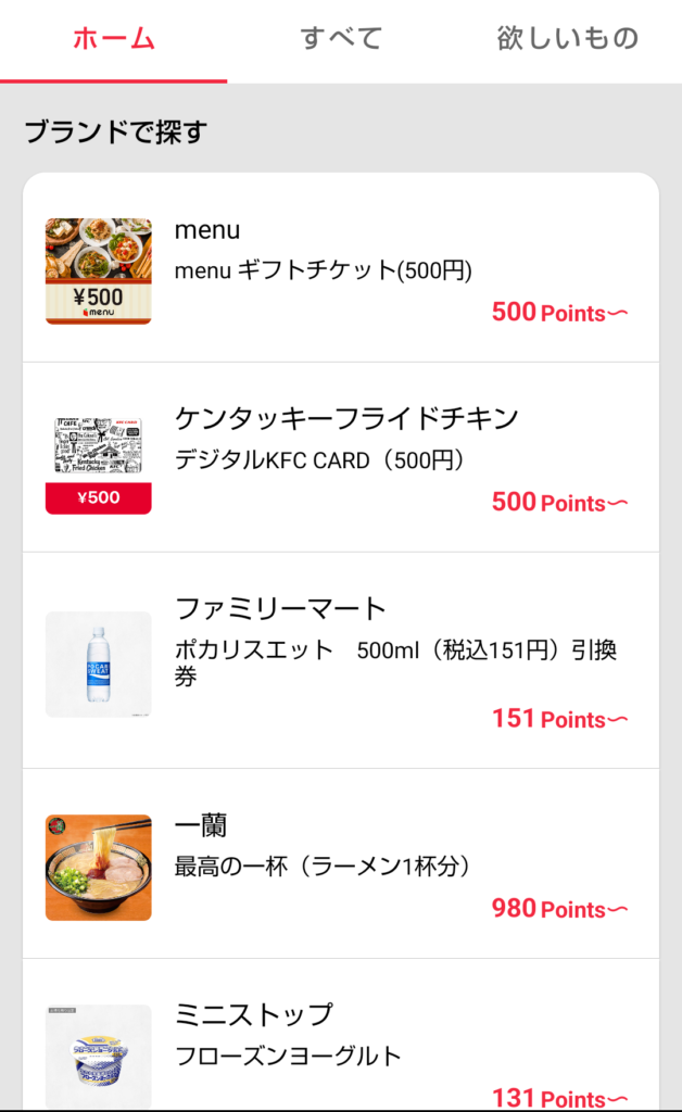 シンクロコインはアプリ内で、コンビニや飲食店で使えるeギフトに交換可能です。